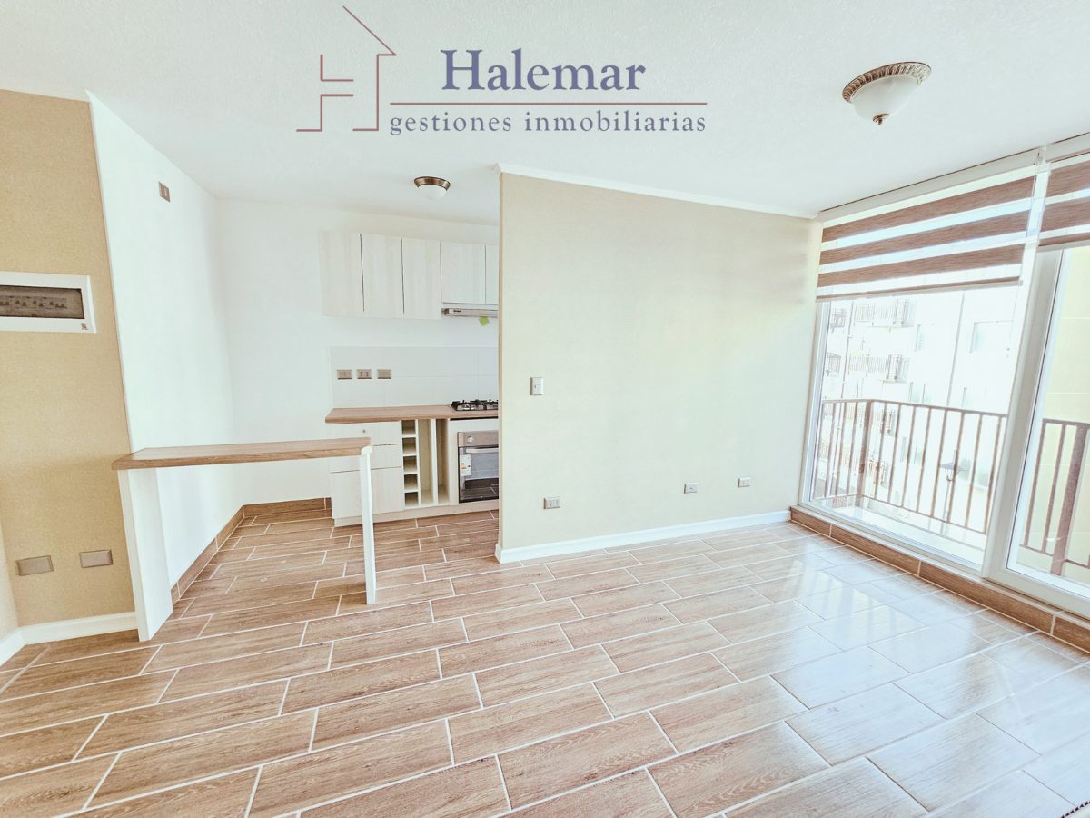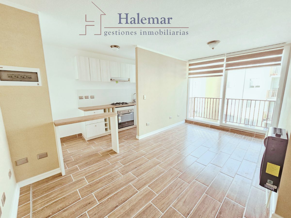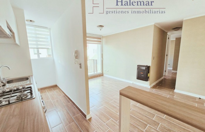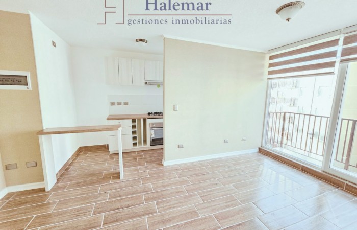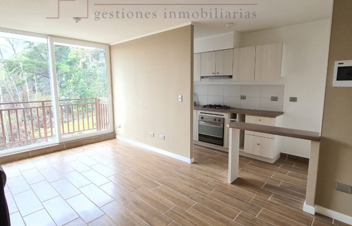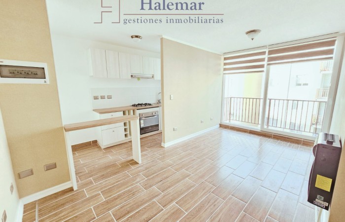 Arrienda este moderno departamento de 59 m², con un diseño único y completamente nuevo. Disfruta de un amplio living comedor con terraza ideal para relajarte y disfrutar de la vista, además de una cocina completamente amoblada equipada con campana, horno eléctrico y encimera de vitrofusión, para que cocines con comodidad.