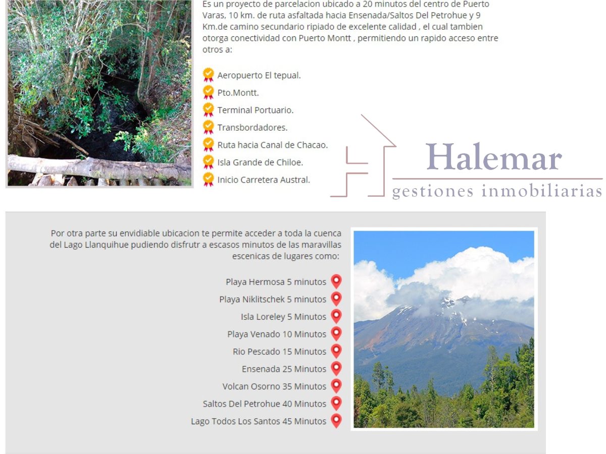 - Cercanía inmediata a los principales atractivos de la cuenca del Lago Llanquihue: